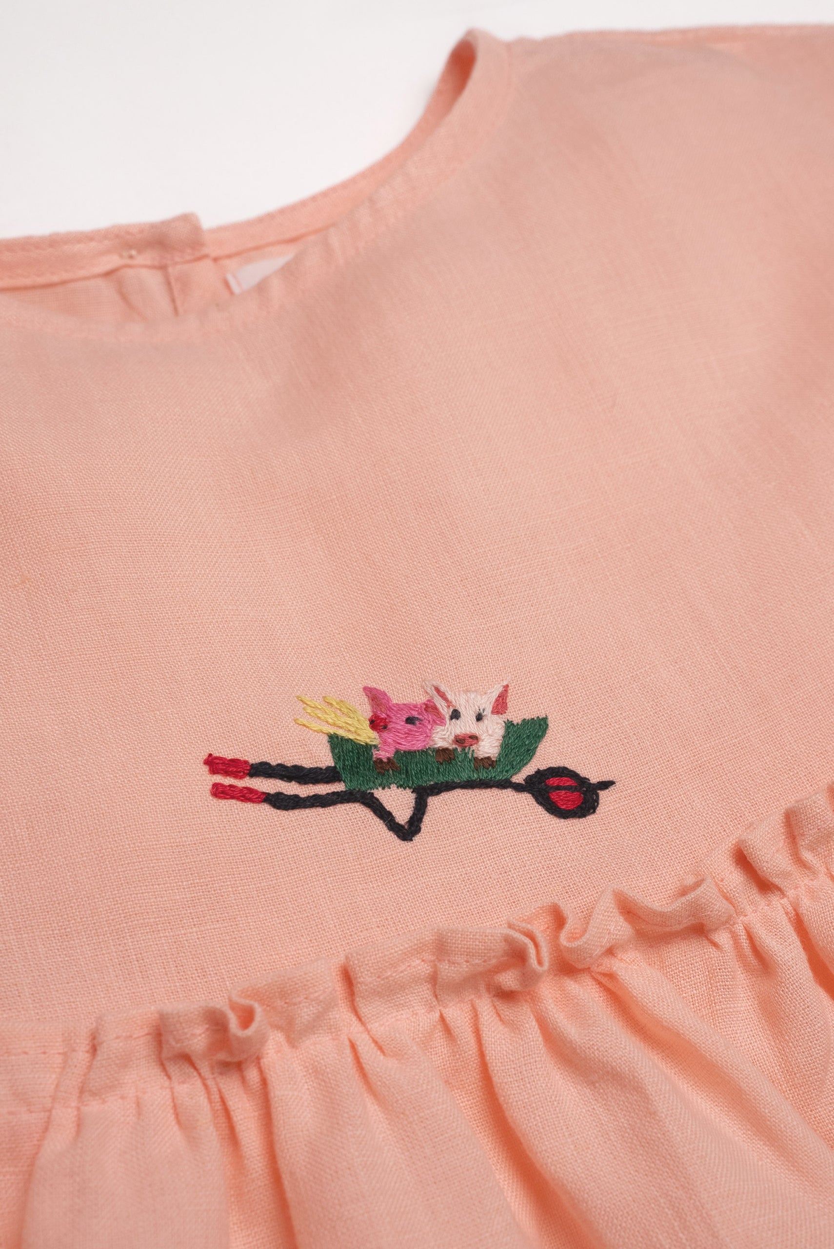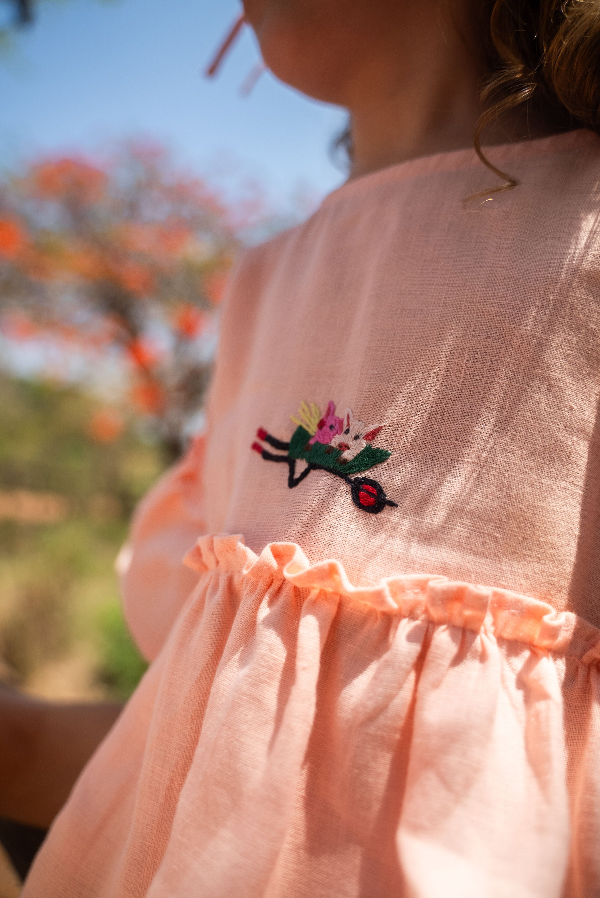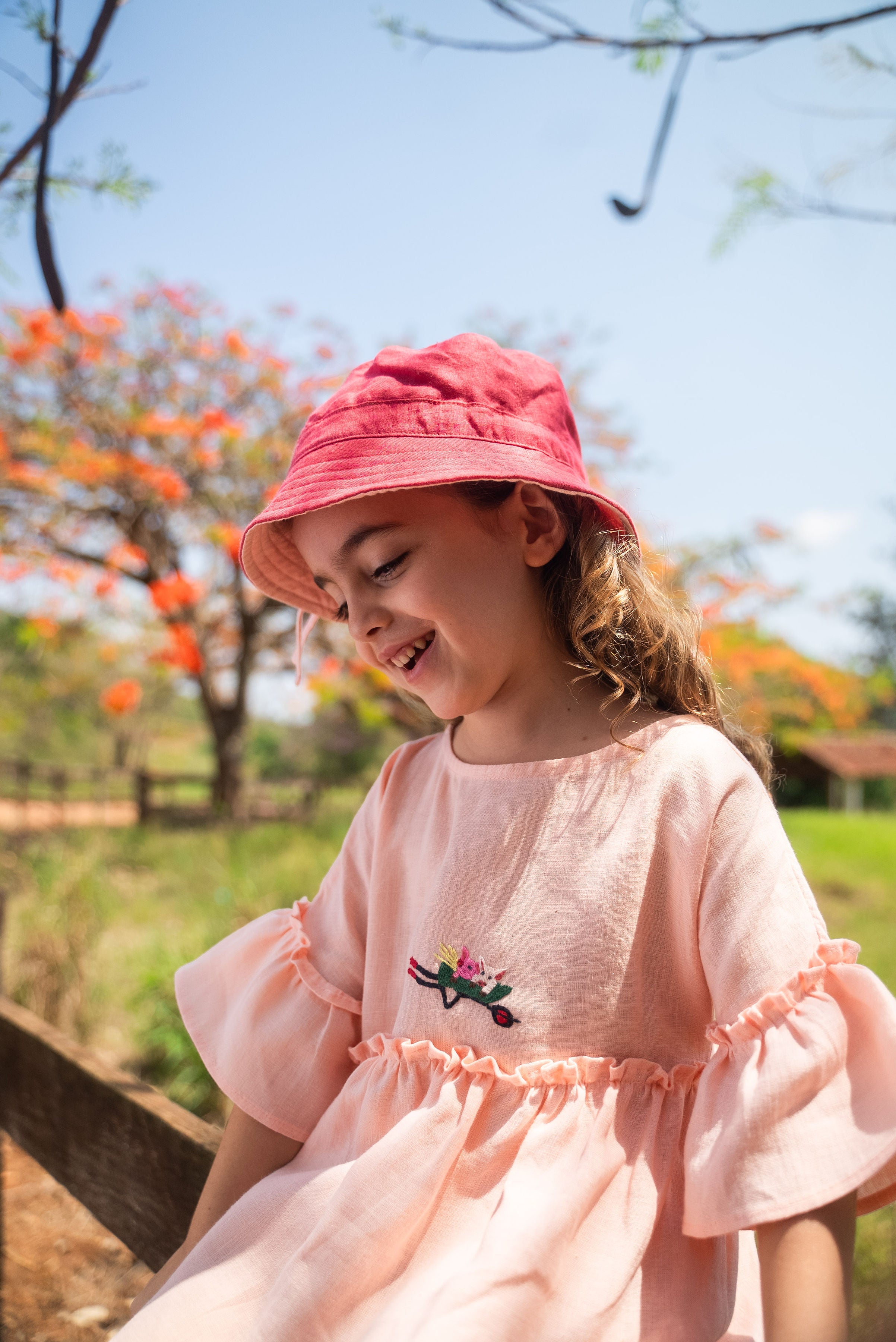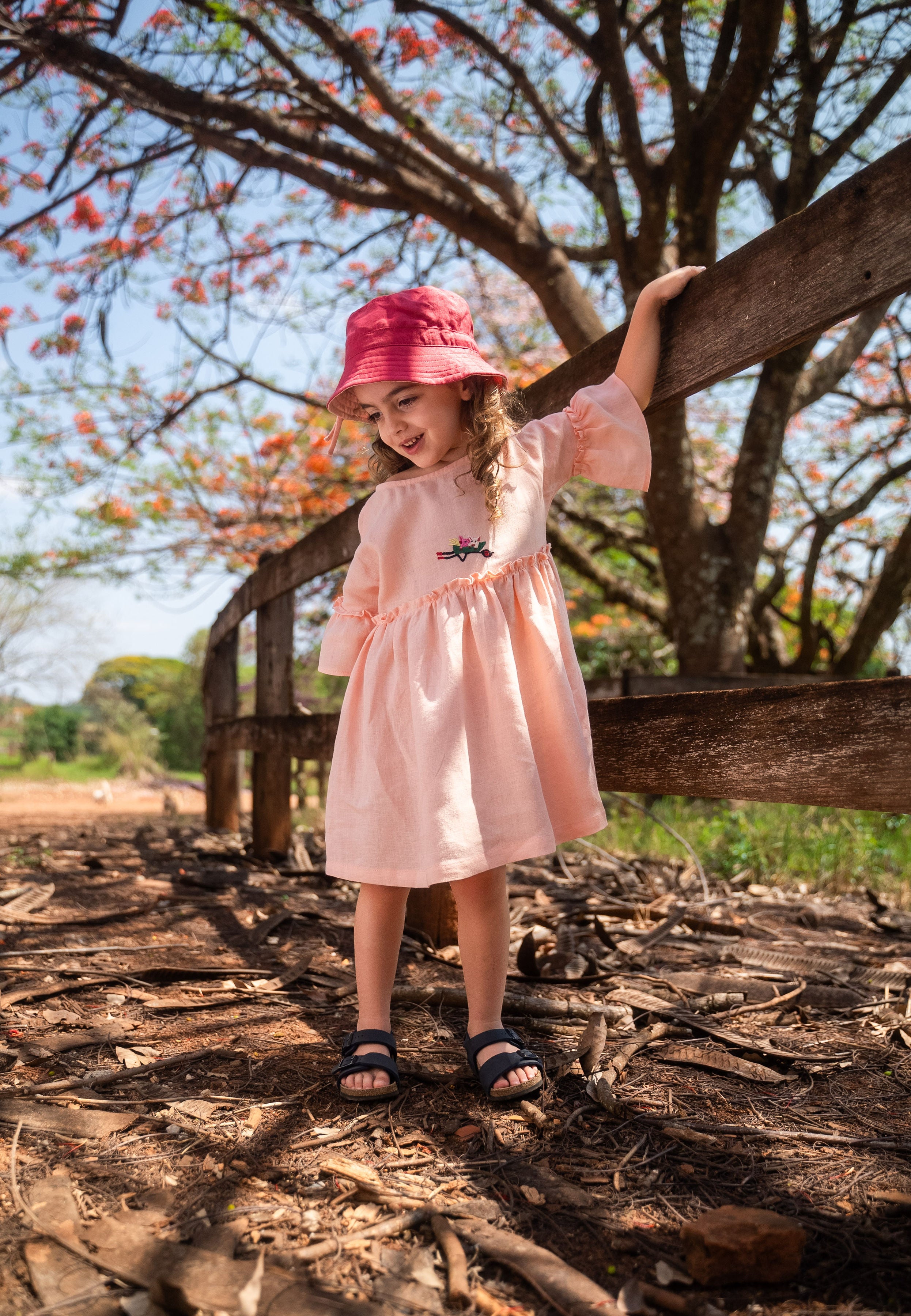 Vestido soltinho em linho puro, perfeito para manter sua filha estilosa sem esforço e confortável durante todo um dia de brincadeiras, seja em uma festa de aniversário ou um passeio em família no final de semana.
